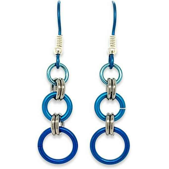 Ti2 Titanium Triple Beam Drop Earrings - Blue