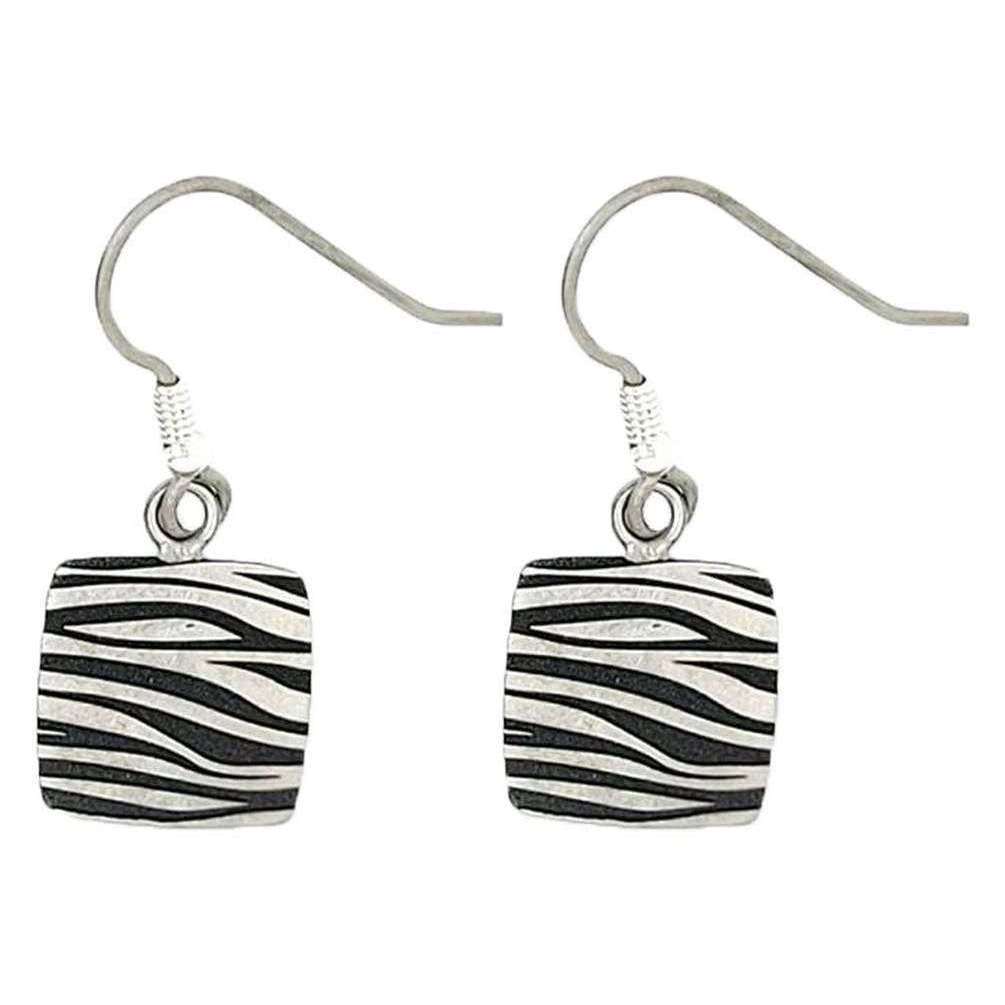 Ti2 Titanium Zebra Print Square Drop Earrings - Silver/Black