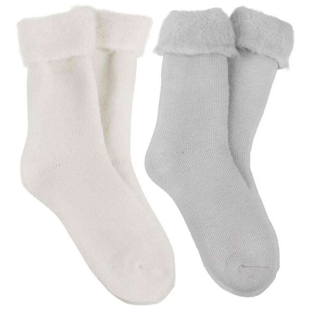 Totes Toasties 2 Pack Brushed Thermal Bed Socks - Grey/Oat Beige