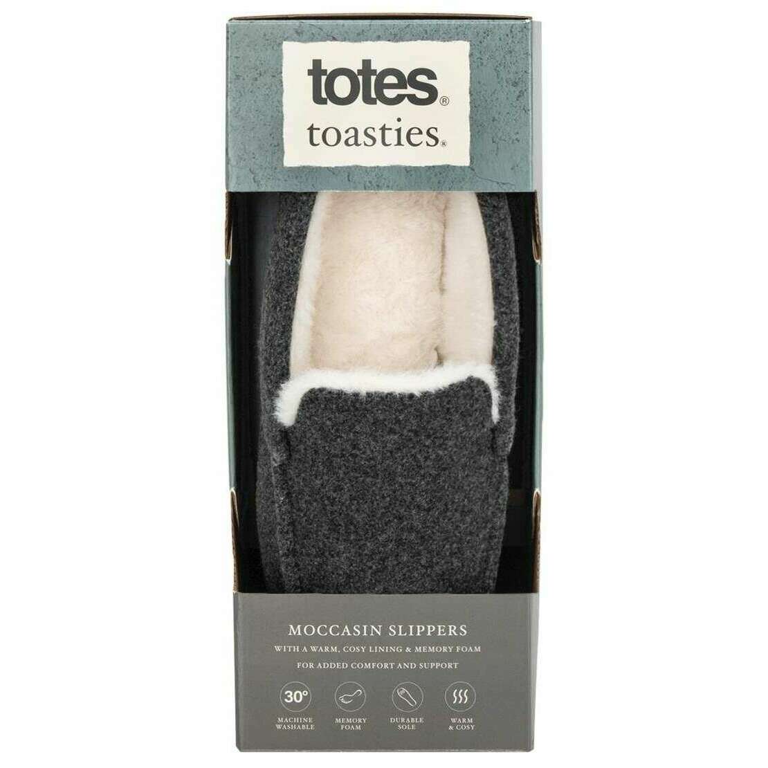 These men's felt moccasin slippers by the brand Totes Toasties are made from 80% polyester and 20% cotton top, 100% polyester lining and textile tpr outsole and are showcased in grey. Also the grey slippers are designed in a plain pattern, It is recommended to hand wash only to keep these slippers in good condition. All the slippers come complete with totes toasties packaging. The Totes Toasties Felt Moccasin Slippers - Grey features a classic moccasin design that will become a frequent wear in any gentlemen's collection. Lined with faux fur ensures your feet are kept nice and toasty whilst roaming around the house with added memory foam and a durable sole for comfort and support. These will become your everyday pair that you slide into after a long day of work.