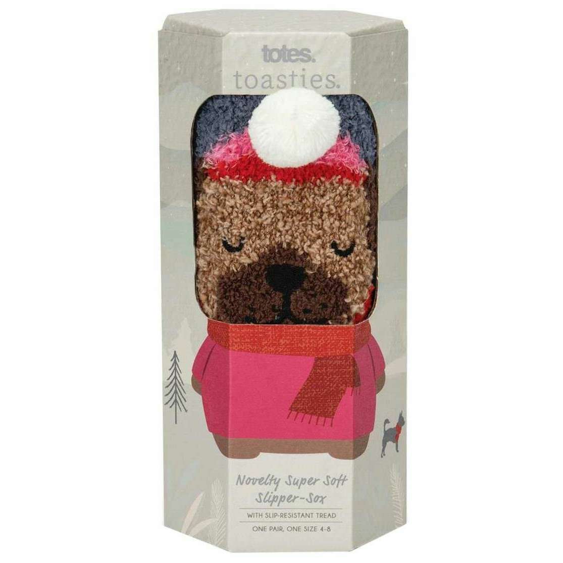 Totes Toasties Novelty Super Soft Slipper Socks - Dog Purple
