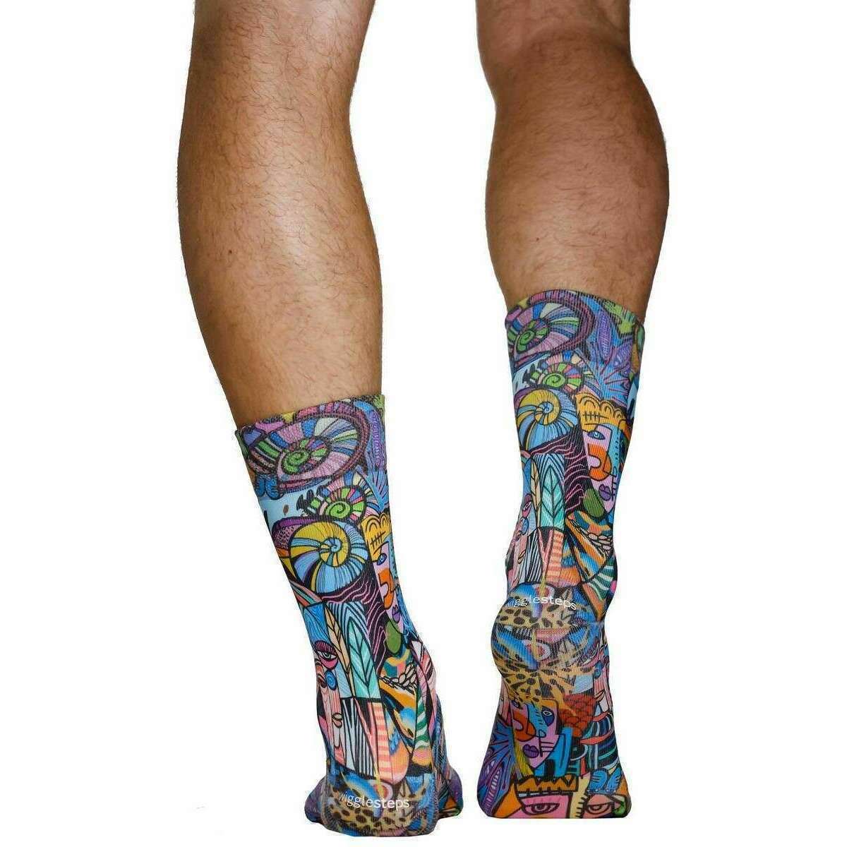 These men's mix art socks have been made from 45% cotton, 36% polyester, 17% polamide and 2% elastane, featured in a multi-colour colour and are from the brand Wigglesteps. Also the multi-colour socks are designed in a unique pattern, It is recommended to wash at 30 degrees, do not iron, do not tumble dry and do not bleech to keep these socks in good condition. All the socks come complete with wigglesteps tags. The Wigglesteps Mix Art Socks - Multi-colour feature a soft Organic cotton inside which is comfortable against the skin while the outside is Dry-Touch polyester which ensures they dry quickly while still being breathable. They are designed to prevent that horrible sticky feeling when worn for long periods making them a must have for everyday. Their fun and vibrant design make them the perfect choice for a gift or just if you want to liven up your wardrobe.