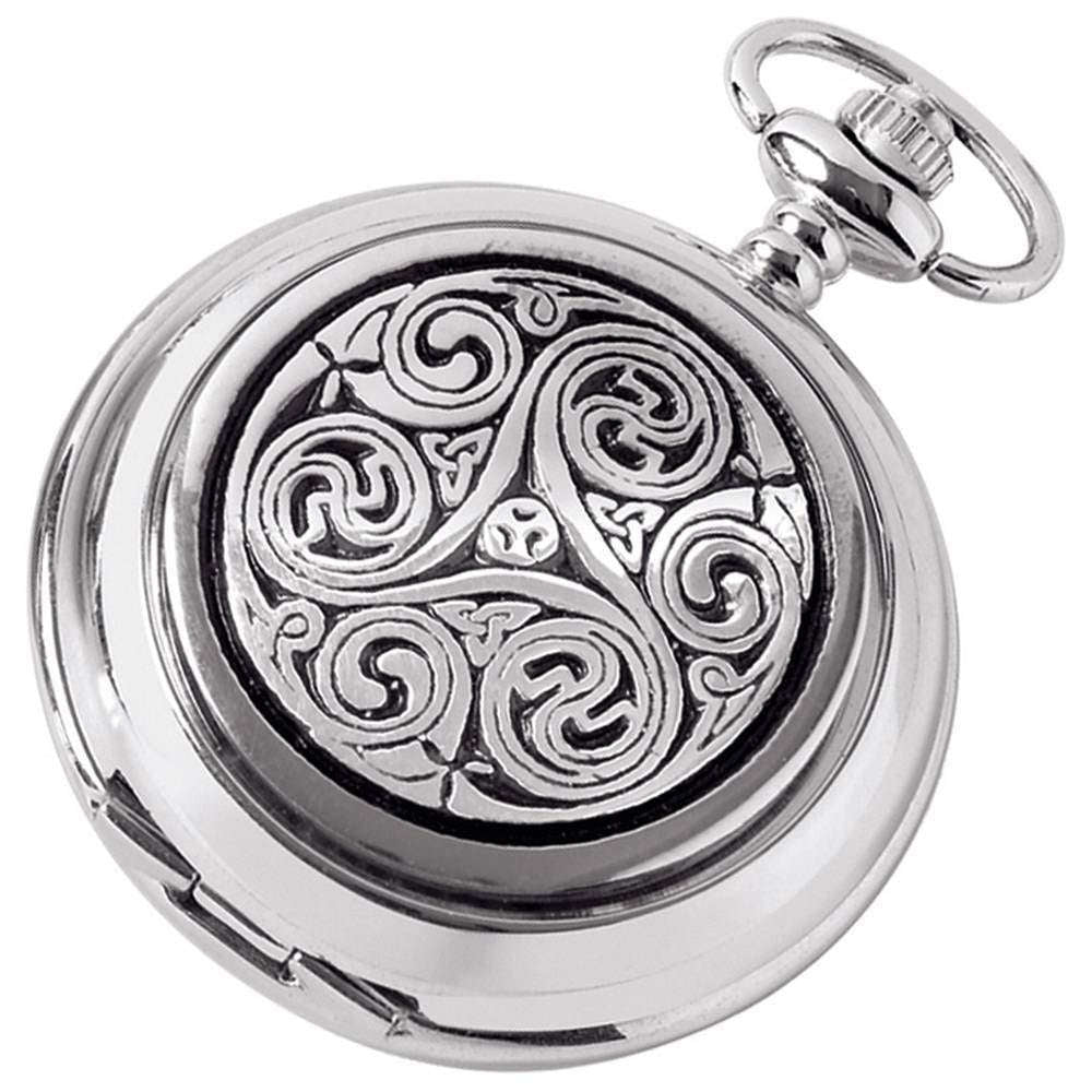 Woodford are renowned for their truly wonderful pocket watch designs and this piece is a glorious example. Beautifully crafted into a double full hunter style and adorning a Celtic pattern, this pocket watch is certain to be a favourite amongst any fine gentlemans collection; you wont find a watch quite like it. Sure to be of the finest quality as it has been skilfully manufactured from quality chrome plate and fitted with a mechanical movement. The double hunter design reveals the utterly stunning movement of the watch, slim roman numerals and breguet style hands; telling the time in complete class can now be done with ease. This chrome plated mechanical pocket watch comes complete with Woodford packaging making it a fine choice of gift.