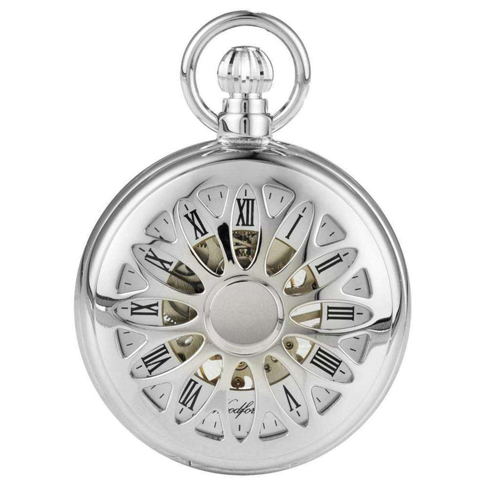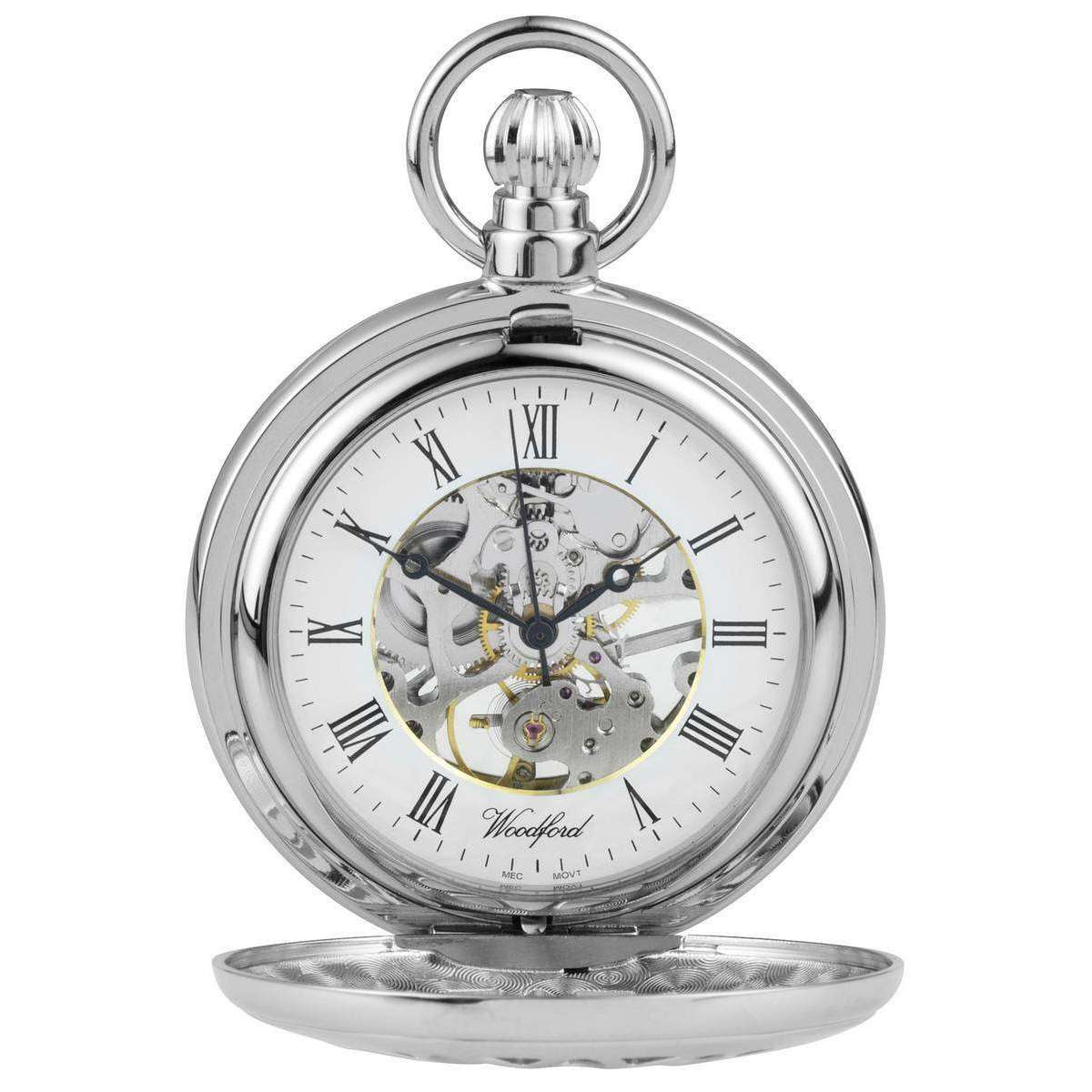 Woodford Chrome Plated Cut Out Half Hunter Mechanical Pocket Watch - Silver