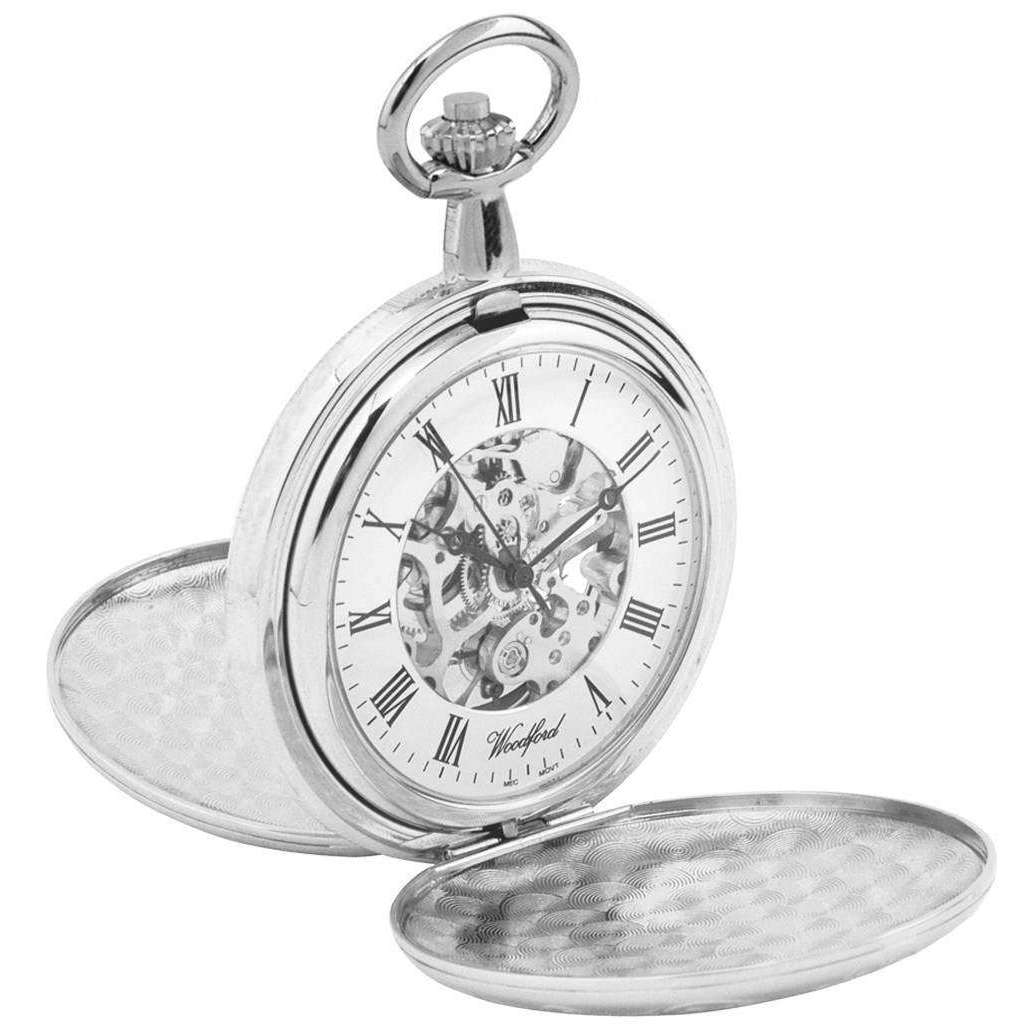 Woodford Chrome Plated Double Full Hunter Skeleton Mechanical Pocket Watch - Silver