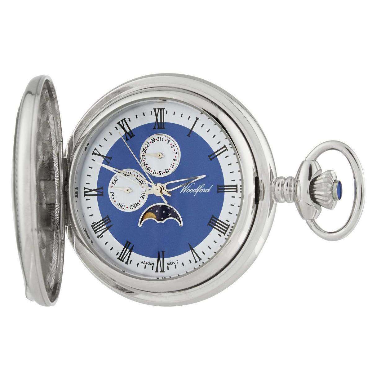 Woodford Chrome Plated Quartz Moon Dial Pocket Watch - Silver