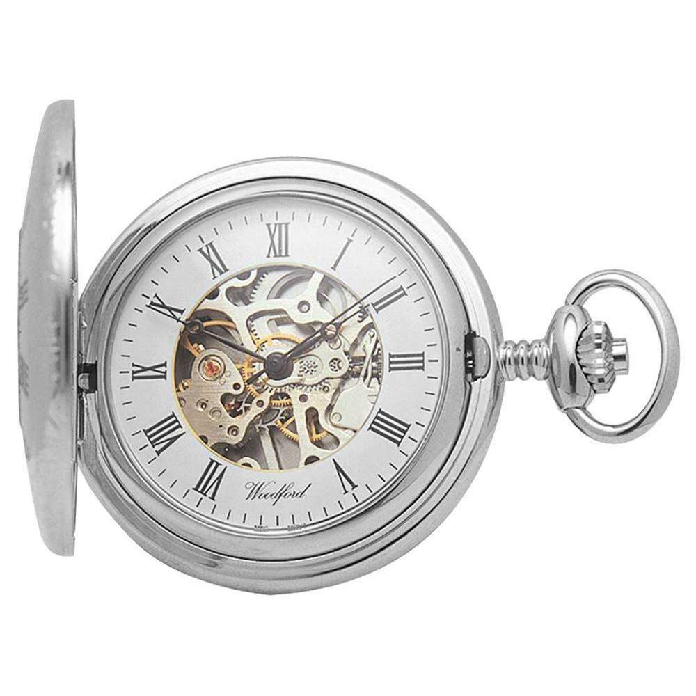 Woodford Chrome Plated Skeleton Half Hunter Mechanical Pocket Watch - Silver