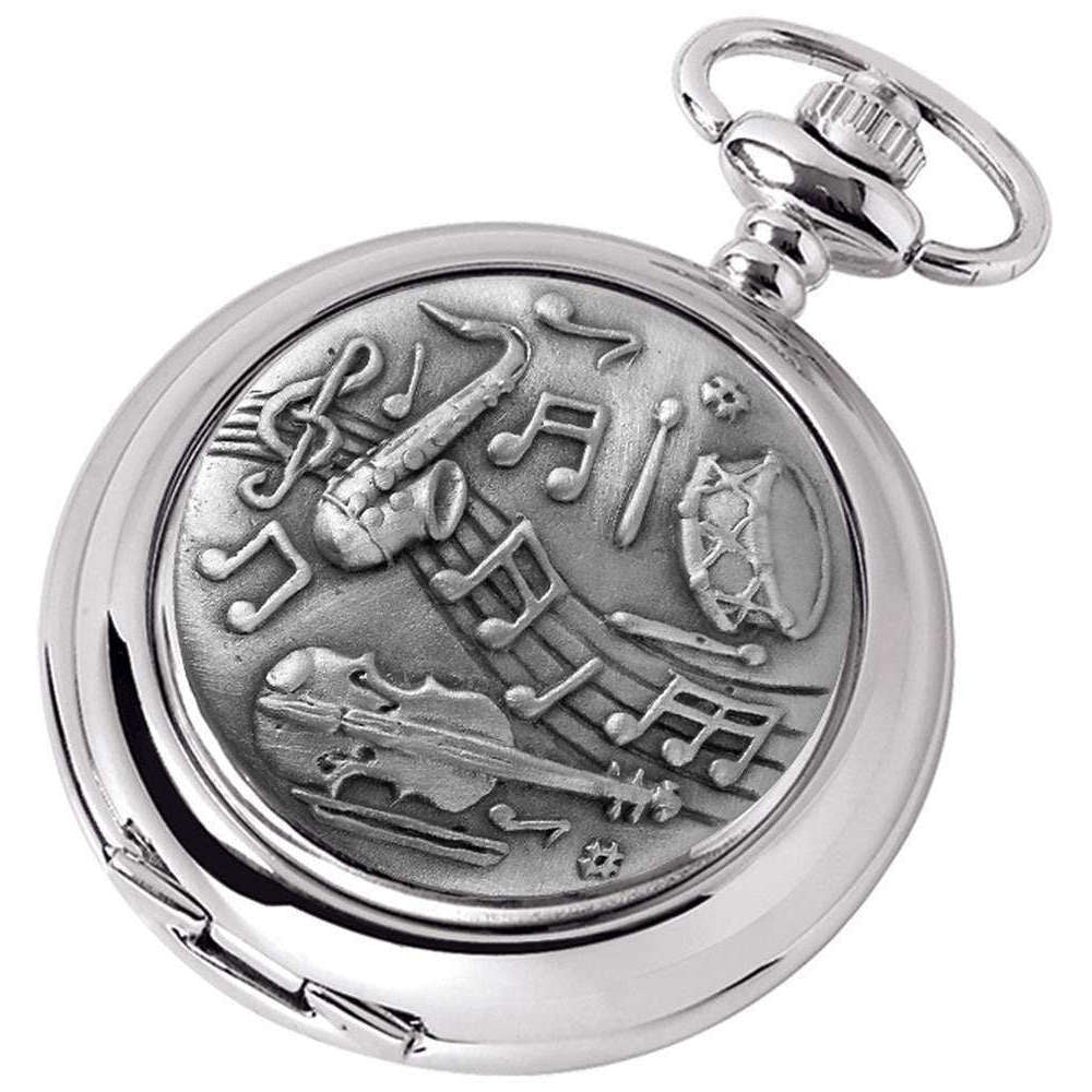 Woodford Musical Chrome Plated Full Hunter Quartz Pocket Watch - Silver