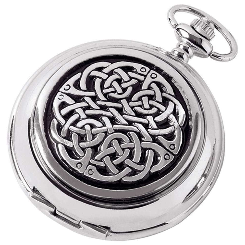 Woodford are renowned for their truly wonderful pocket watch designs and this piece is a glorious example. Beautifully crafted into a double full hunter style and adorning a never ending knot pattern, this pocket watch is certain to be a favourite amongst any fine gentlemans collection; you wont find a watch quite like it. Sure to be of the finest quality as it has been skilfully manufactured from quality chrome plate and fitted with a mechanical movement. The double hunter design reveals the utterly stunning movement of the watch, slim roman numerals and breguet style hands; telling the time in complete class can now be done with ease. This chrome plated mechanical pocket watch comes complete with Woodford packaging making it a fine choice of gift.