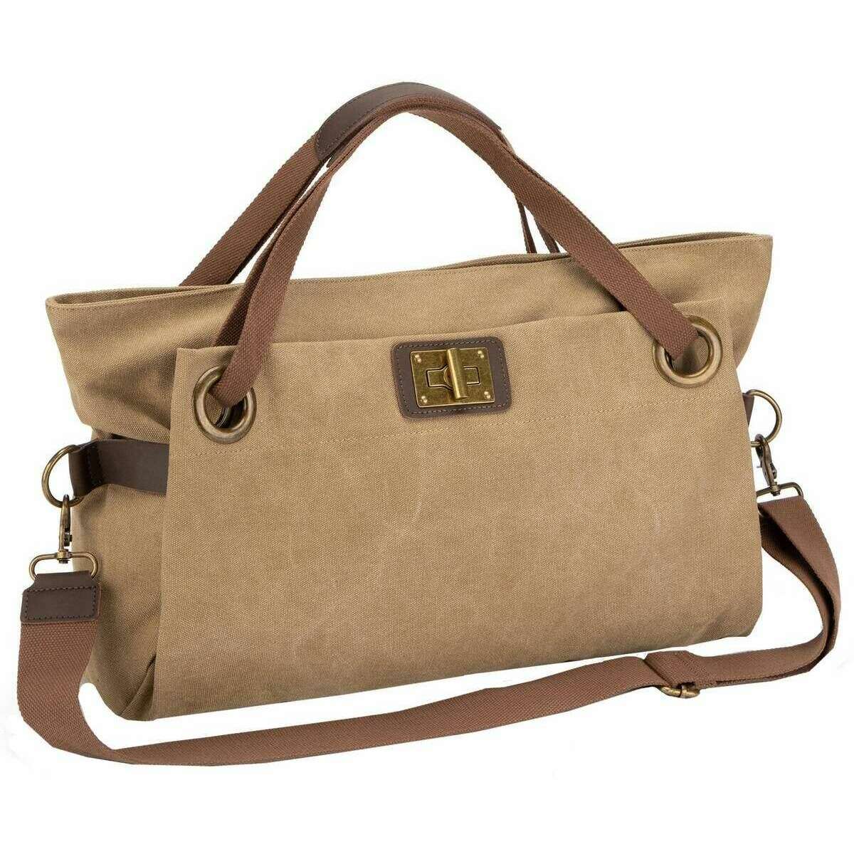 This pont des arts cross body bag for men or women is fashioned by the brand ZEDE in a khaki colour and is made from 100% faded cotton canvas and split cowhide leather. It measures 43cm(height) x 30cm(width) x 14cm(depth). All the bags come complete with zede packaging. The ZEDE Pont Des Arts Cross Body Bag - Beige Khaki is a three in one bag by being able to wear it by hand, crossbody and over the shoulder with the adjustable detachable strap and two large handles. Featuring a zipper closure for a secure wear, a large main compartment for ample storage, exterior pockets and interior pockets for more storage and great organisation. This gorgeous design makes this the perfect bag to elevate any outfit whilst carrying your essentials in style. Crafted from washed cotton canvas and split leather ensures a water-repellent protection and durability.