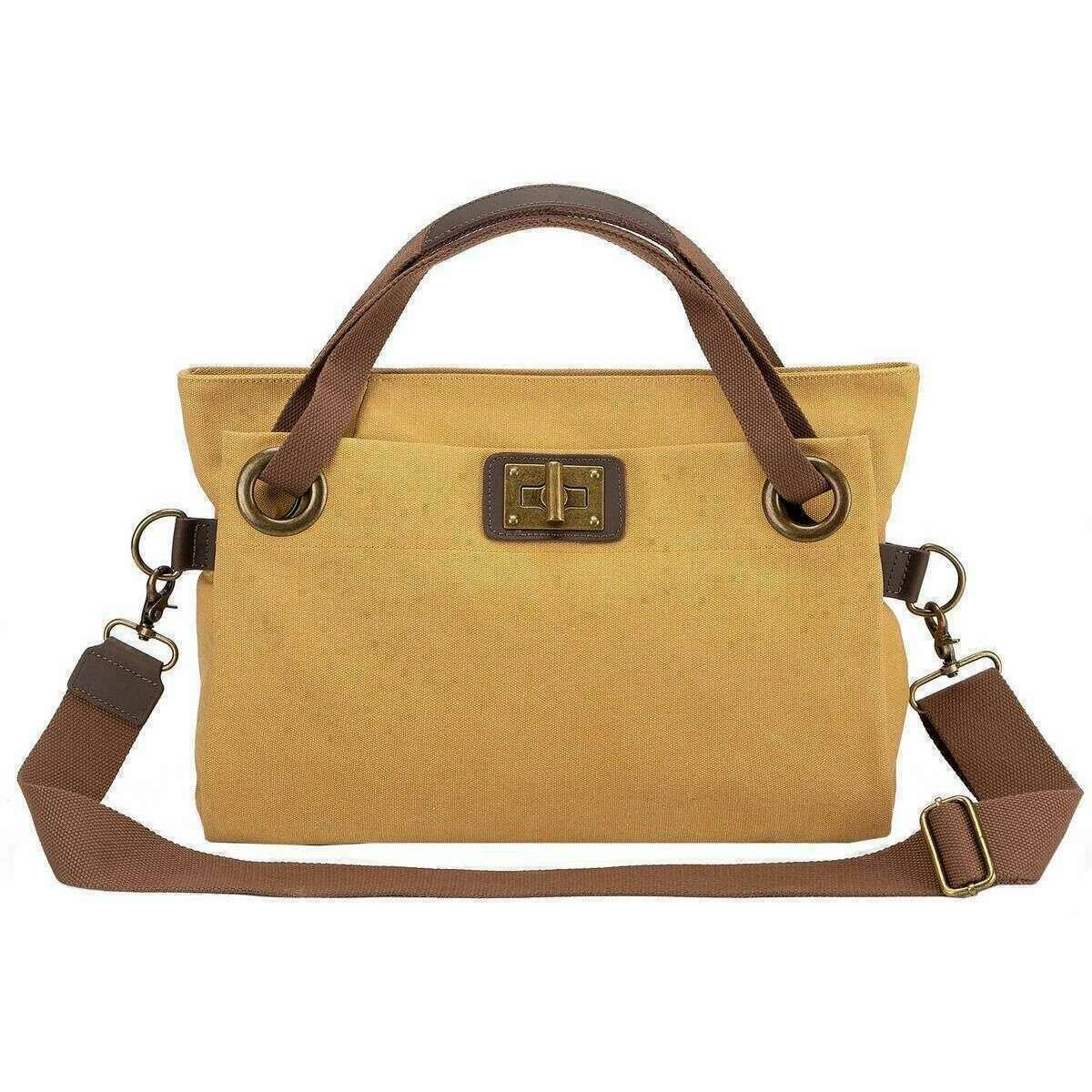 This well made unisex pont des arts medium cross body bag from ZEDE comes in a jaune yellow colour and is manufactured from 100% faded cotton canvas and split cowhide leather. It measures 26cm(height) x 39cm(width) x 13cm(depth). It is recommended to wipe clean with damp cloth to keep this bag in good condition. All the bags come complete in zede packaging. The ZEDE Pont Des Arts Medium Cross Body Bag - Jaune Yellow is a three in one bag by being able to wear it by hand, crossbody and over the shoulder with the adjustable detachable strap and two large handles. Featuring a zipper closure for a secure wear, a large main compartment for ample storage, exterior pockets and interior pockets for more storage and great organisation. This gorgeous design makes this the perfect bag to elevate any outfit whilst carrying your essentials in style. Crafted from washed cotton canvas and split leather ensures a water-repellent protection and durability.
