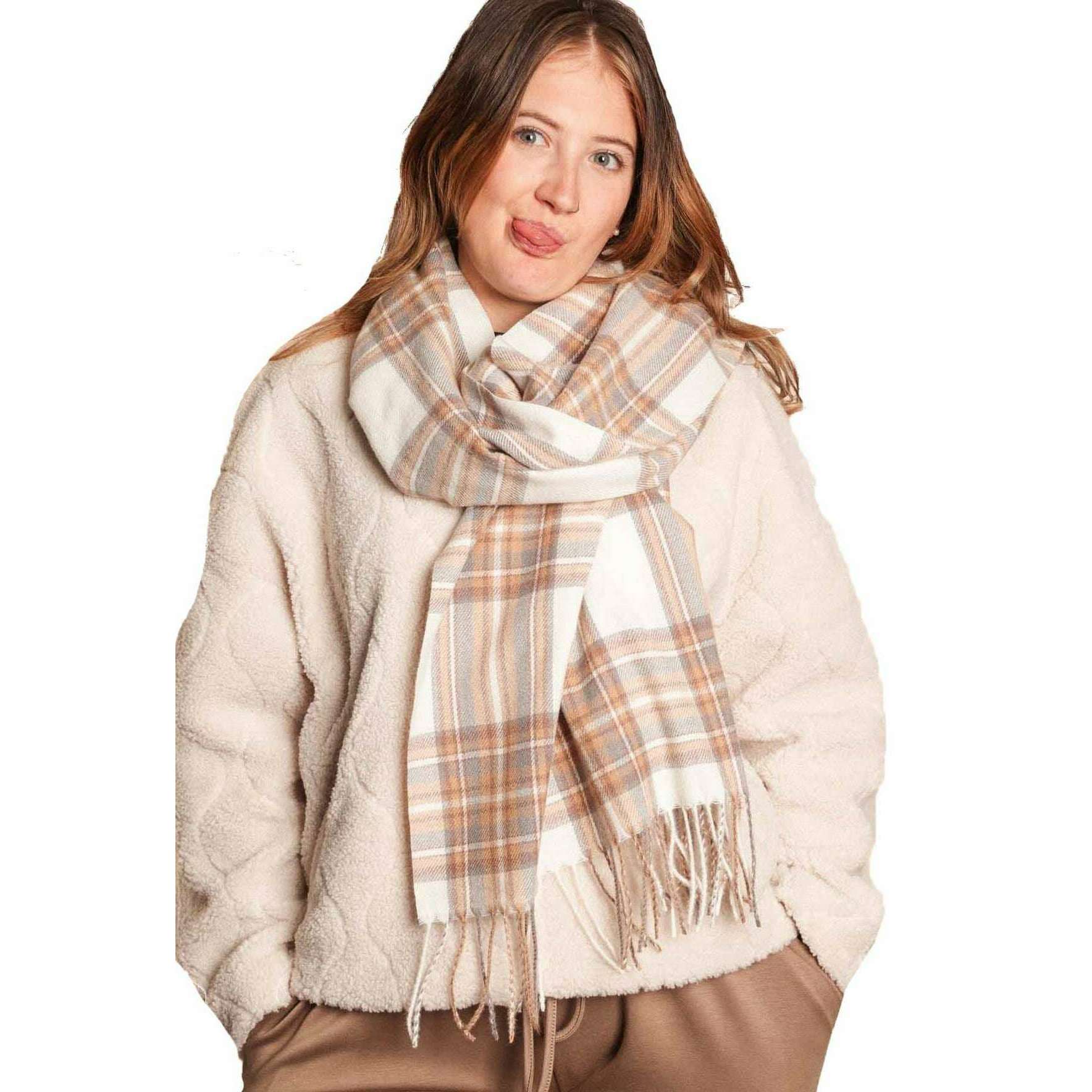 Zelly Check Winter Weight Scarf - Beige/Brown
