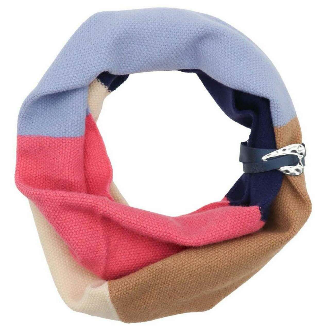 Zelly Faux Leather Detail Loop Snood - Blue/Pink/Beige