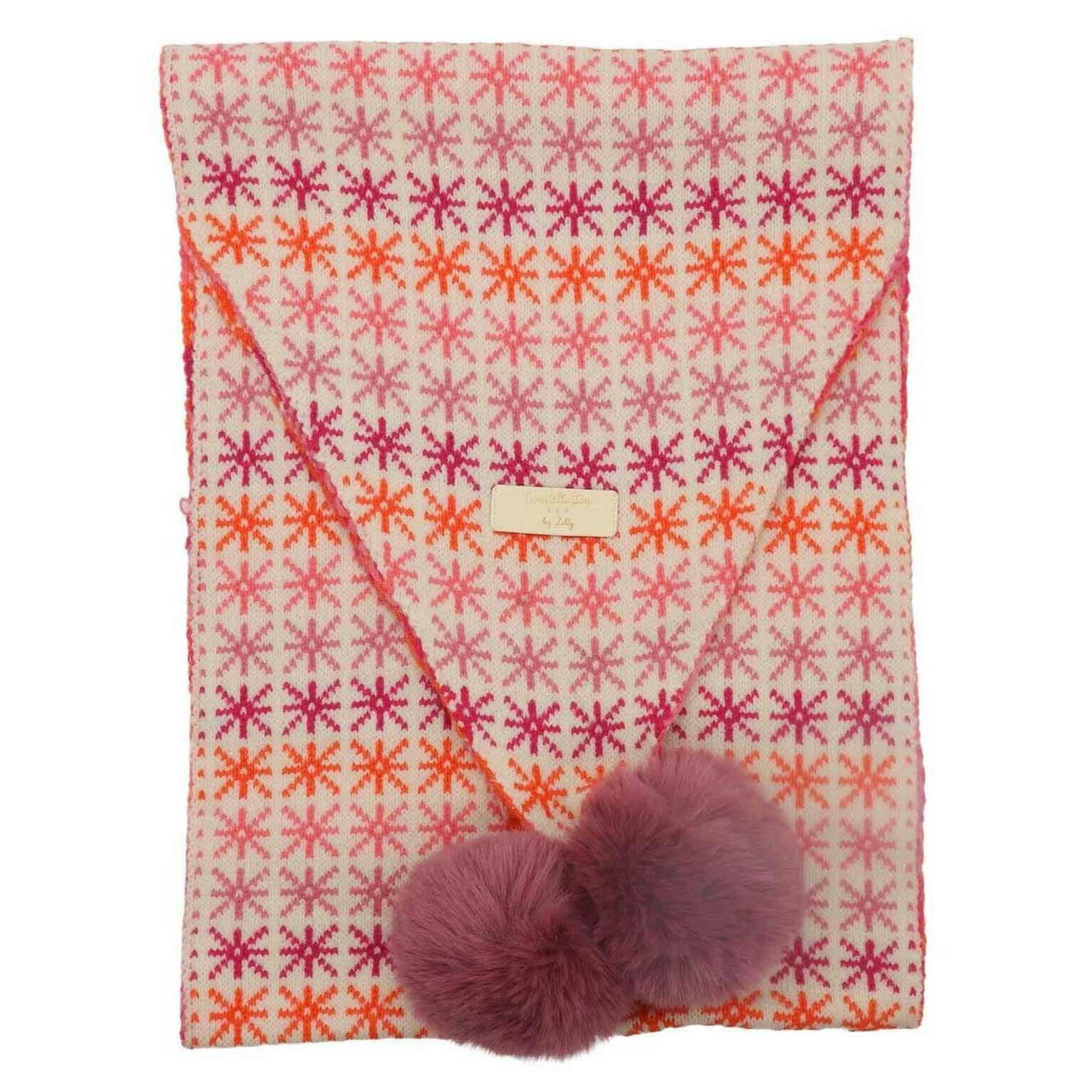 Manufactured from 36% chinlon, 35% acrylic and viscose is this pink women's stars pom pom scarf by the designer Zelly. It measures 185cm(height) x 33cm(width). It is recommended to machine wash at 30 degrees to keep this scarf in good condition. All the scarves come complete in zelly packaging. The Zelly Stars Pom Pom Scarf - Pink has a fun oversized pom pom on each end, giving it a contemporary touch. The warm and cosy material will keep you wrapped up in the cold weather and designed in-house, it is sure to keep you looking stylish, paired with your favourite winter wardrobe attire.